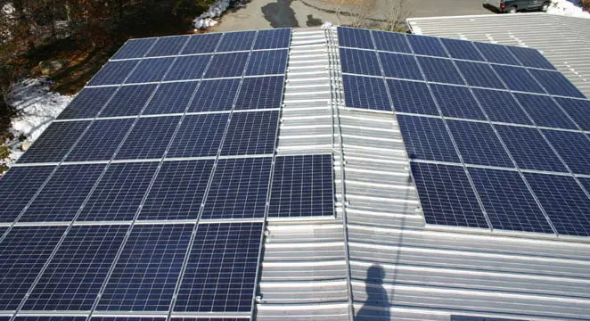 January 2010- Falmouth Products has installed 102 Evergreen Solar ES-B 195 watt solar panels. This system provides 19,890 watts of green three phase electricity controlled by grid tied inverters. Surplus power is fed into the grid.